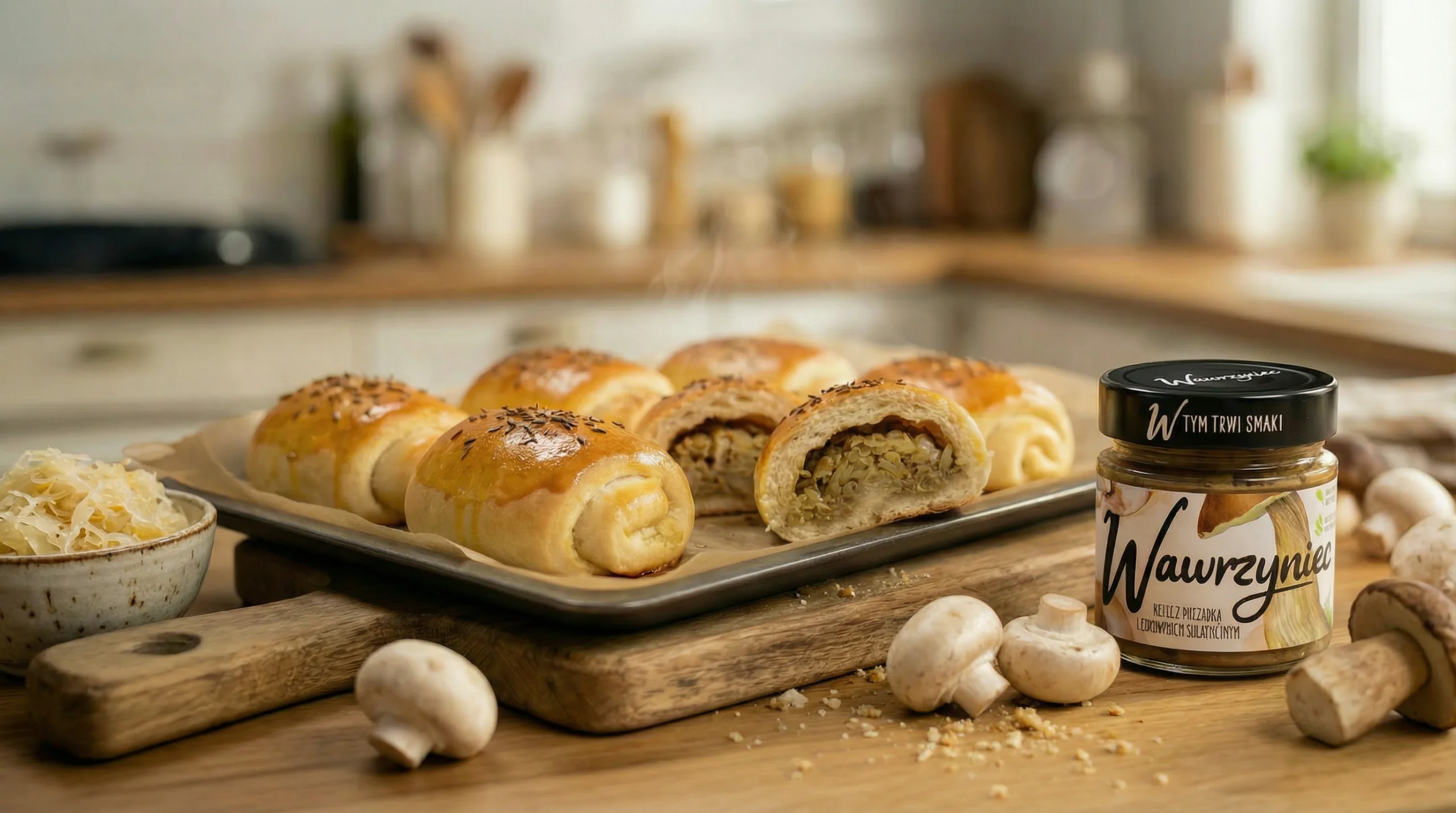 Ugotuj kapustę, wymieszaj z pastą Wawrzyniec z pieczarką i borowikiem i dopraw.